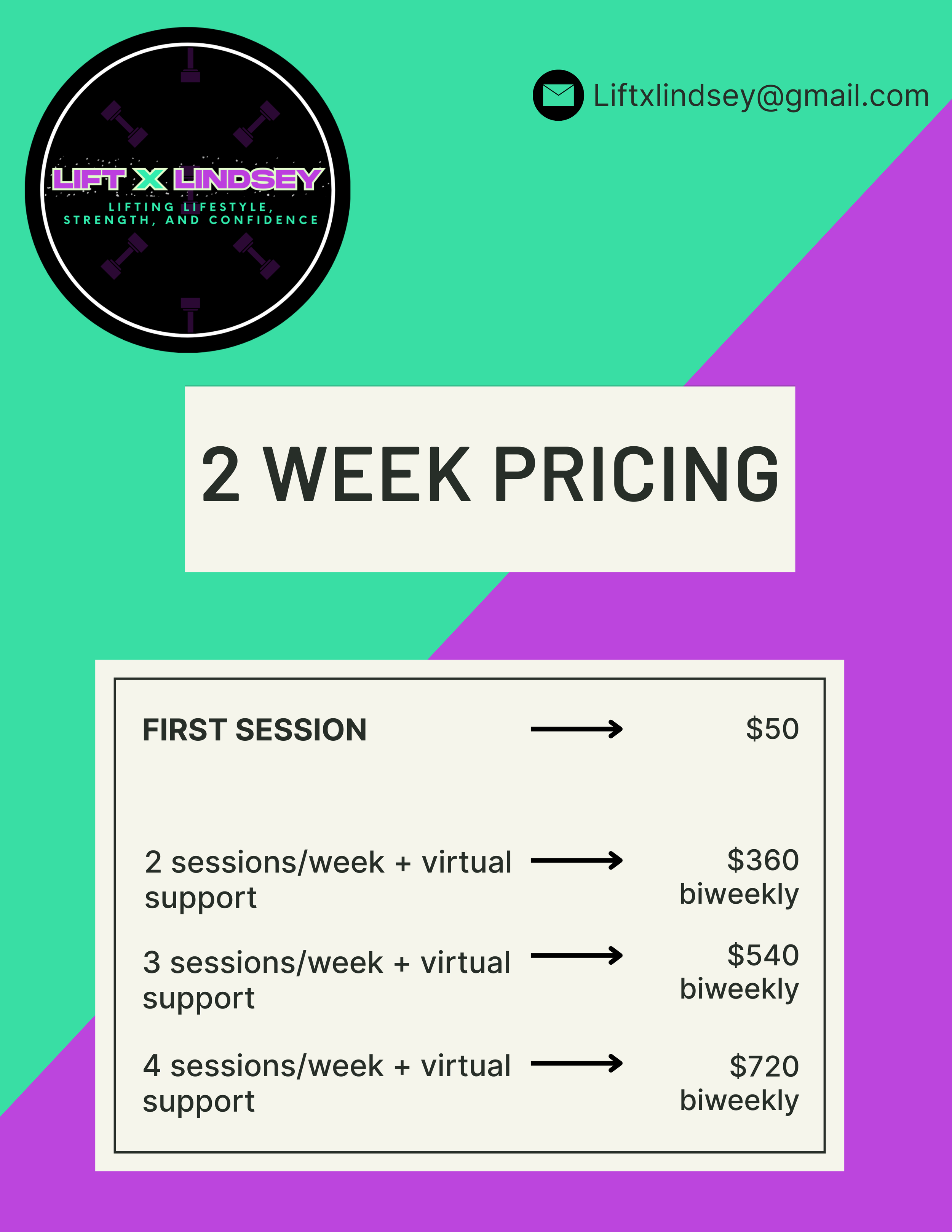 Outside of the studio, I’ll be checking in virtually through your preferred method (email, zoom, text, or phone call) to hold you accountable with simple habit changes outside of the workout!